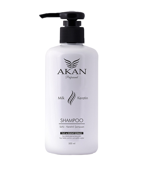 AKAN Sütlü-Keratinli Şampuan, saç dökülmelerine karşı etkili formülüyle saçı besler, parlatır ve yumuşaklık sağlar.